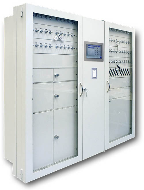 Keys are secured by locks and RFID tags. Access to keys with PIN code and/or card.