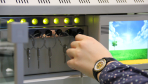 It contains double touch screen with two Computer units. Users can easily work in parallel on both computers and pick up or put back keys.